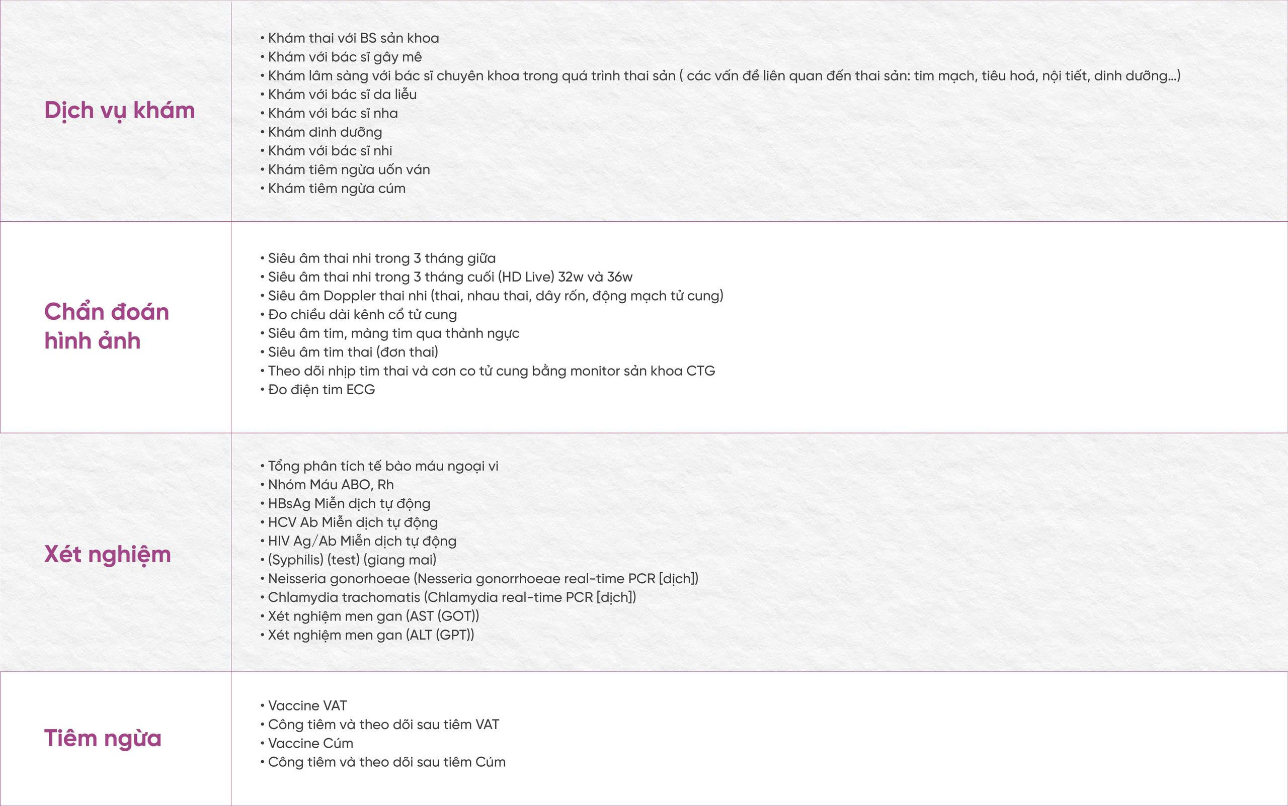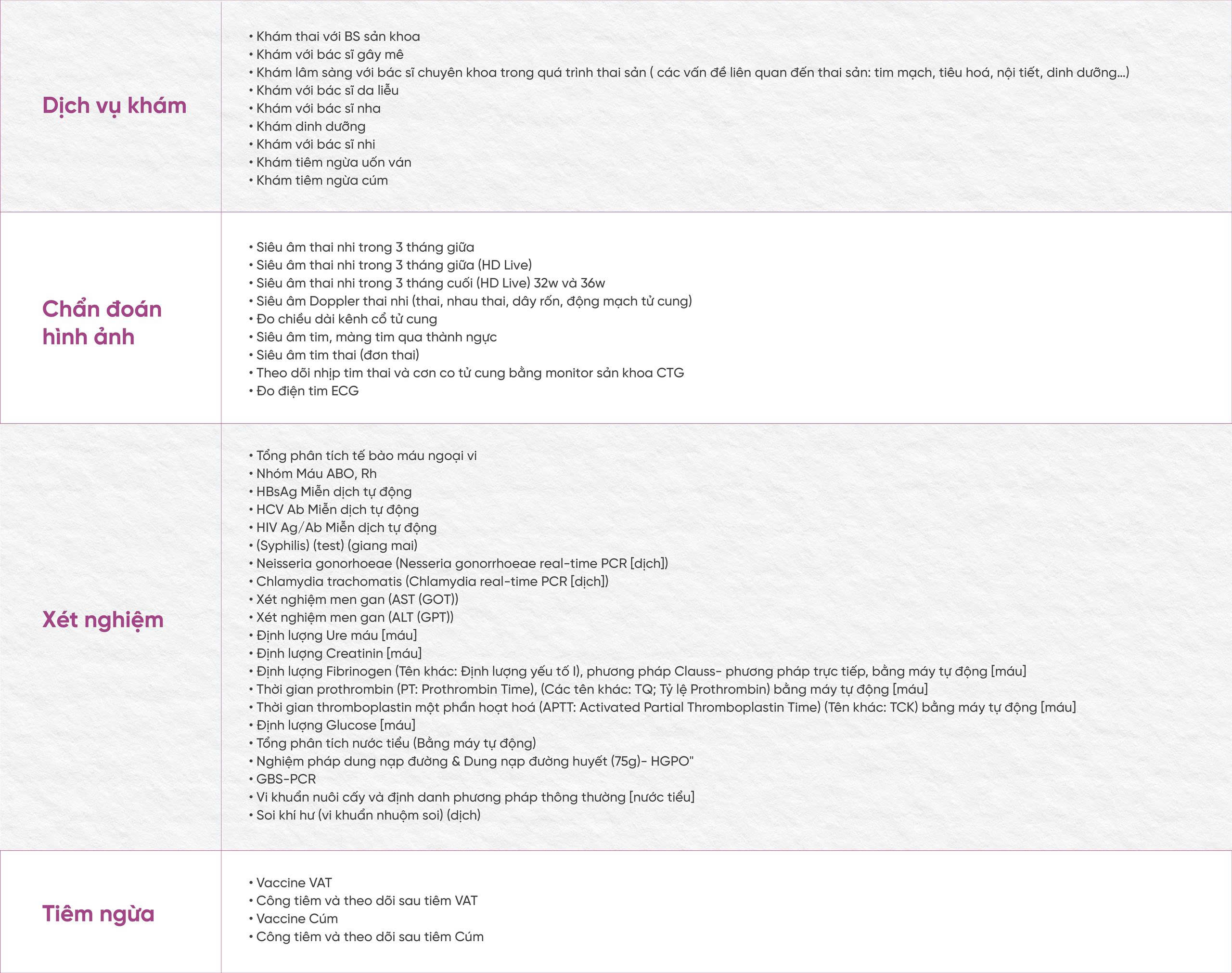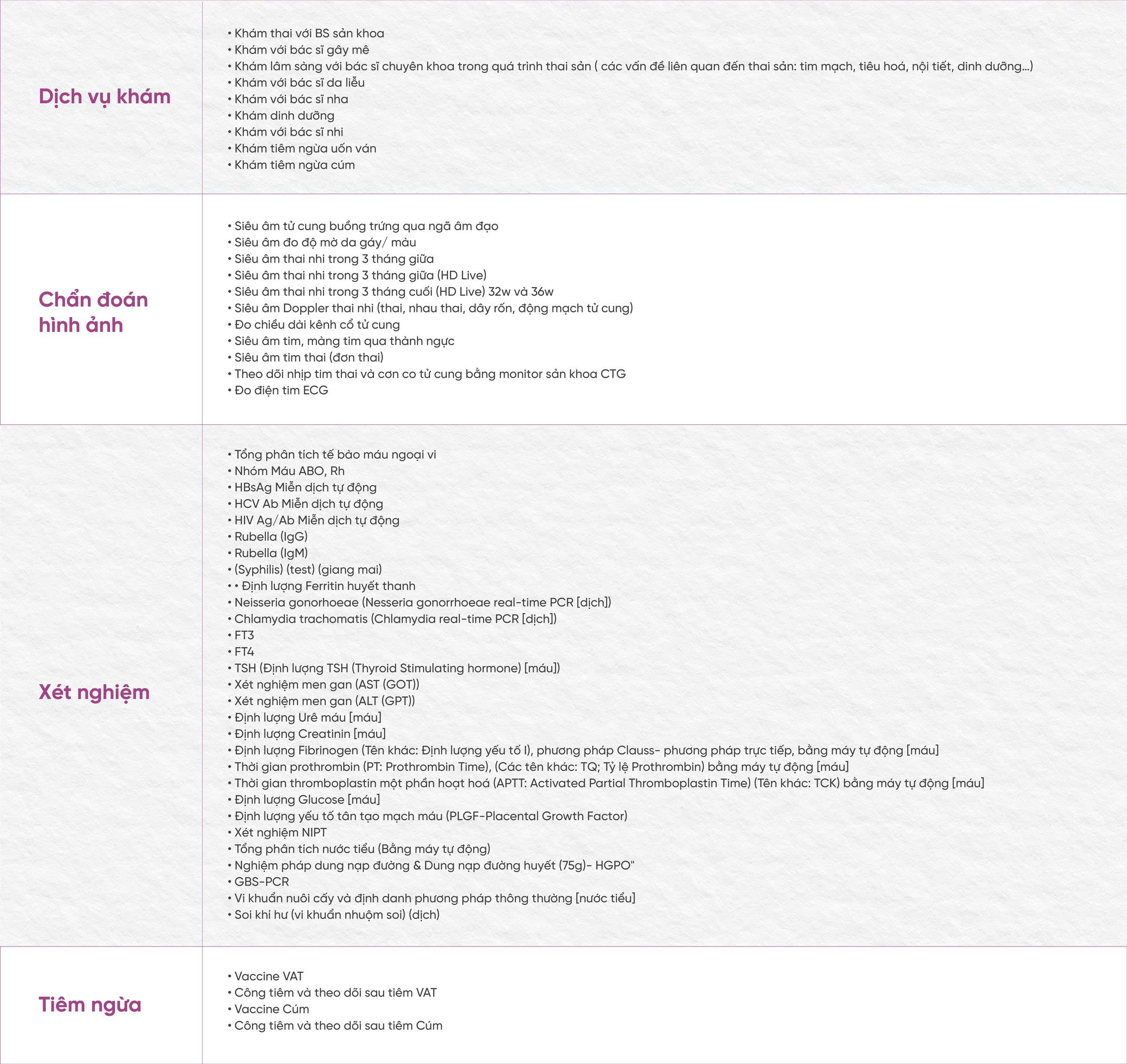 - Đội ngũ bác sĩ sản khoa giàu kinh nghiệm, theo dõi thai kỳ xuyên suốt, đảm bảo tư vấn nhất quán và phù hợp theo từng giai đoạn mang thai.
