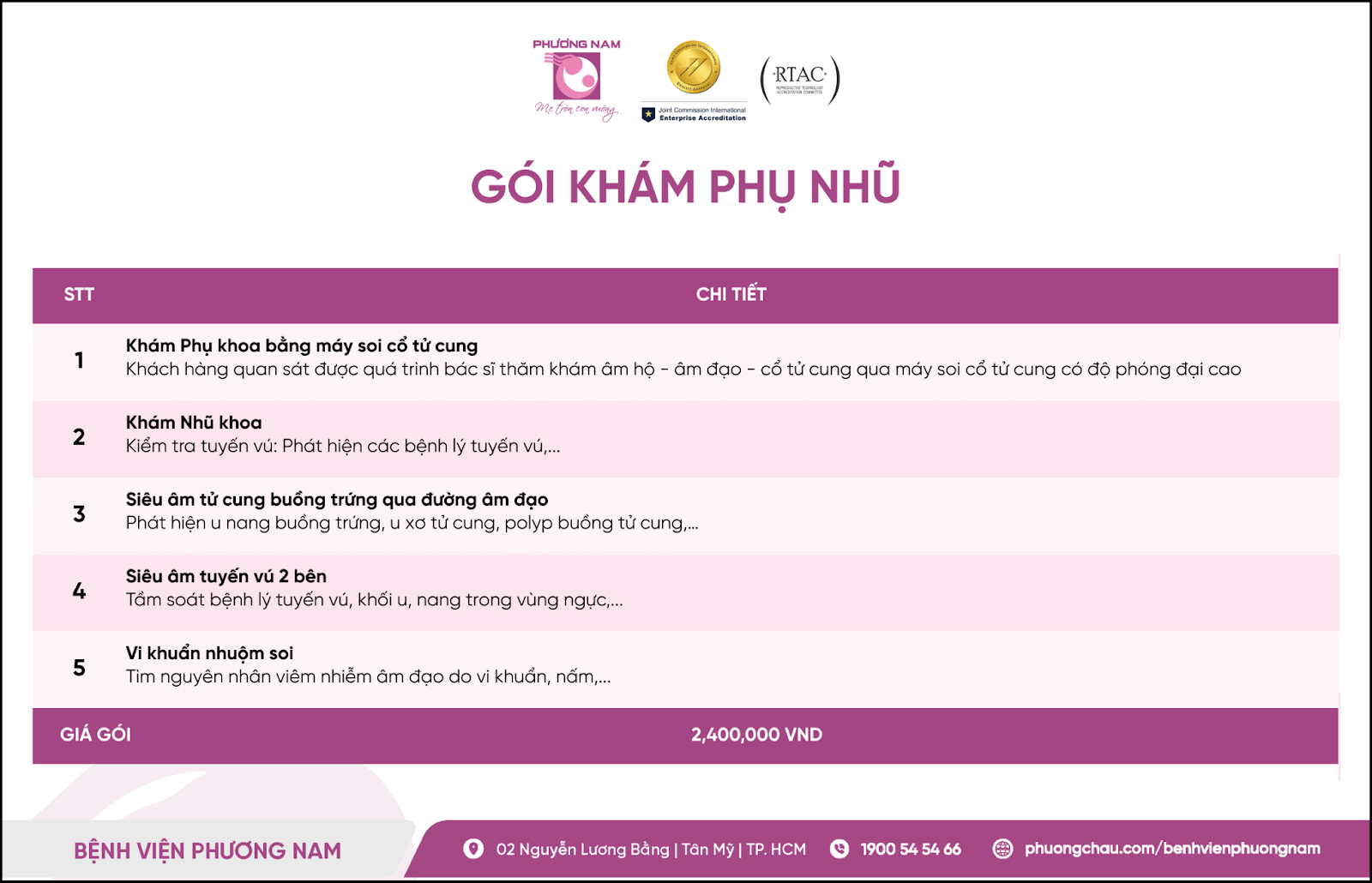 Gói khám PinkCare với chi phí 2.400.000đ