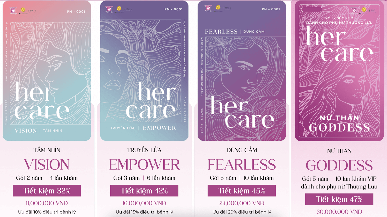 HERCARE bao gồm nhiều lựa chọn gói khám, được tích hợp thành thẻ sức khỏe tiện lợi