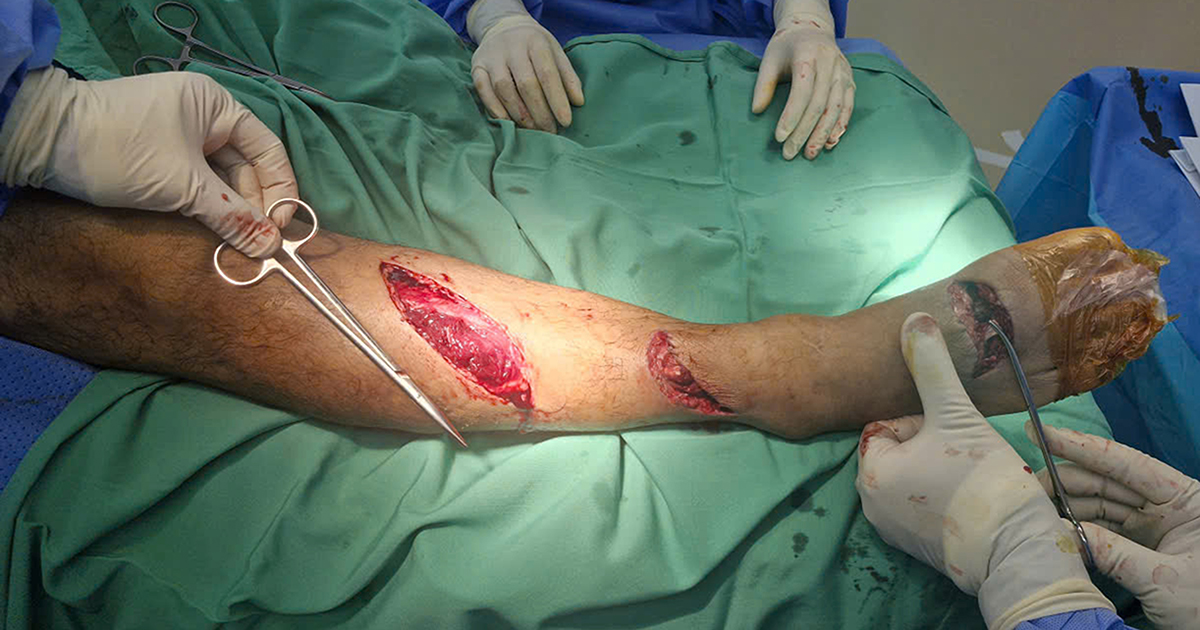 Vết thương nghiêm trọng ở chân lúc nhập viện