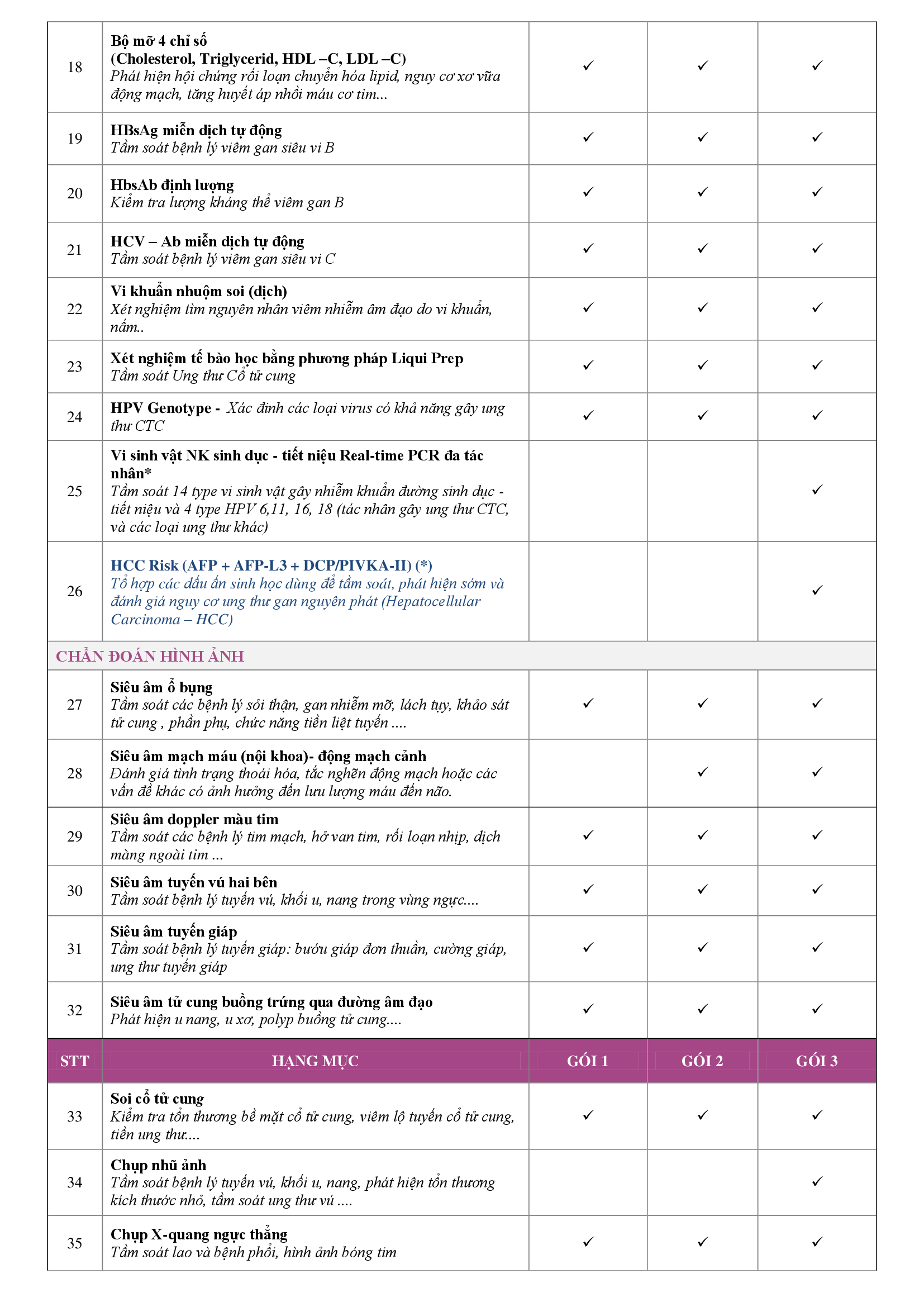 - Gói khám được thiết kế khoa học, phù hợp với từng thể trạng sức khỏe khác nhau nhằm đáp ứng nhu cầu thăm khám đa dạng của chị em phụ nữ.