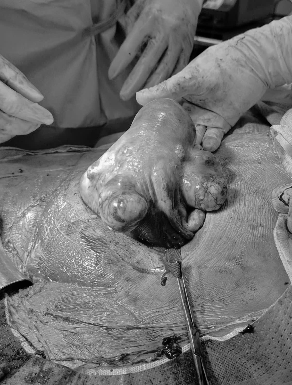 Đến tuần 38+3, mẹ được mổ lấy thai theo chỉ định sản khoa tại Phương Châu. Trong phẫu thuật, bác sĩ ghi nhận tử cung có nhiều u xơ, nhưng đã khéo léo bóc tách những khối u ở vị trí thuận lợi, cầm máu hiệu quả, bảo tồn tối đa tử cung.