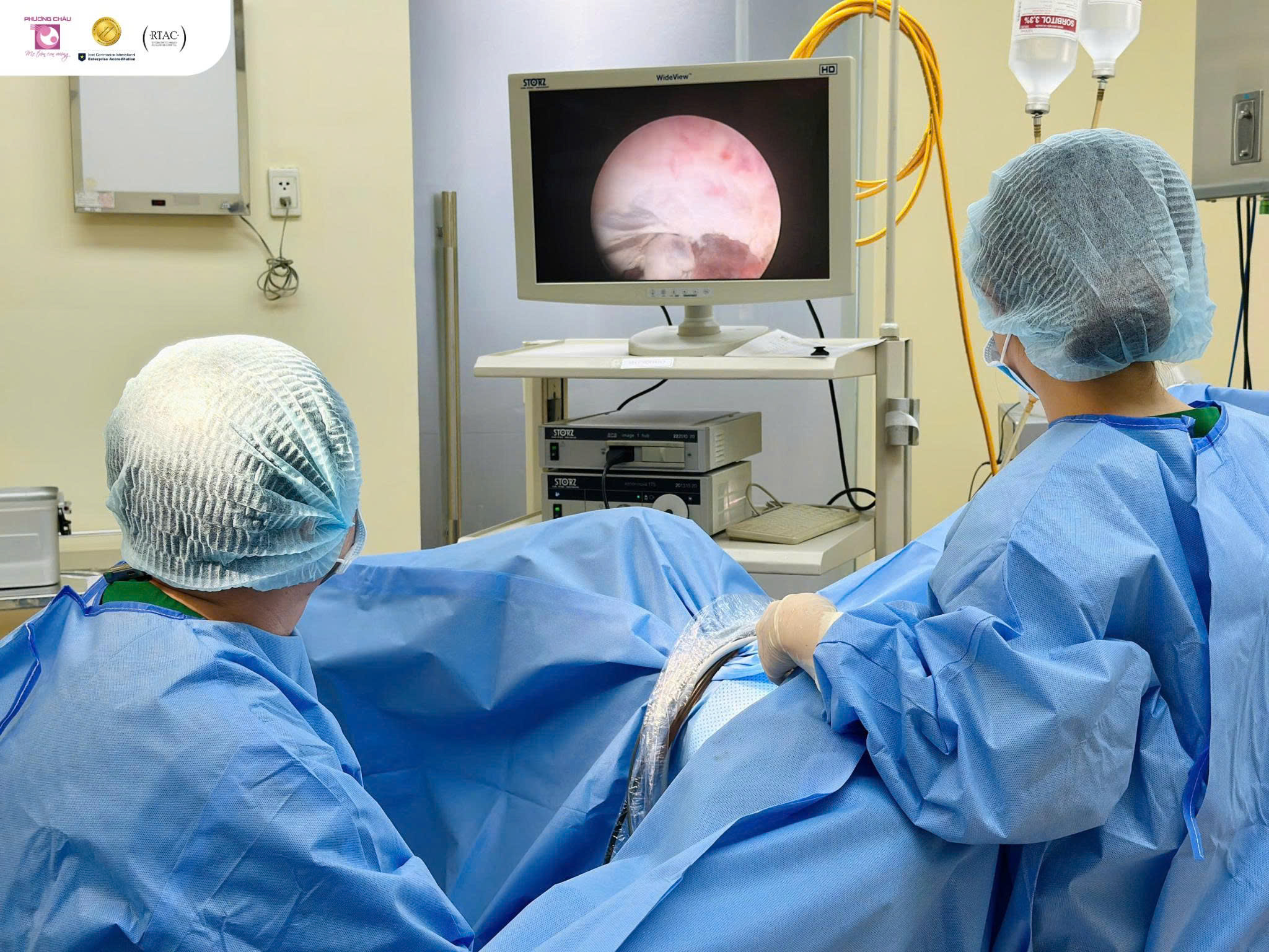 Hình ảnh bác sĩ Phụ khoa Phương Châu đang thực hiện kỹ thuật nội soi buồng tử cung