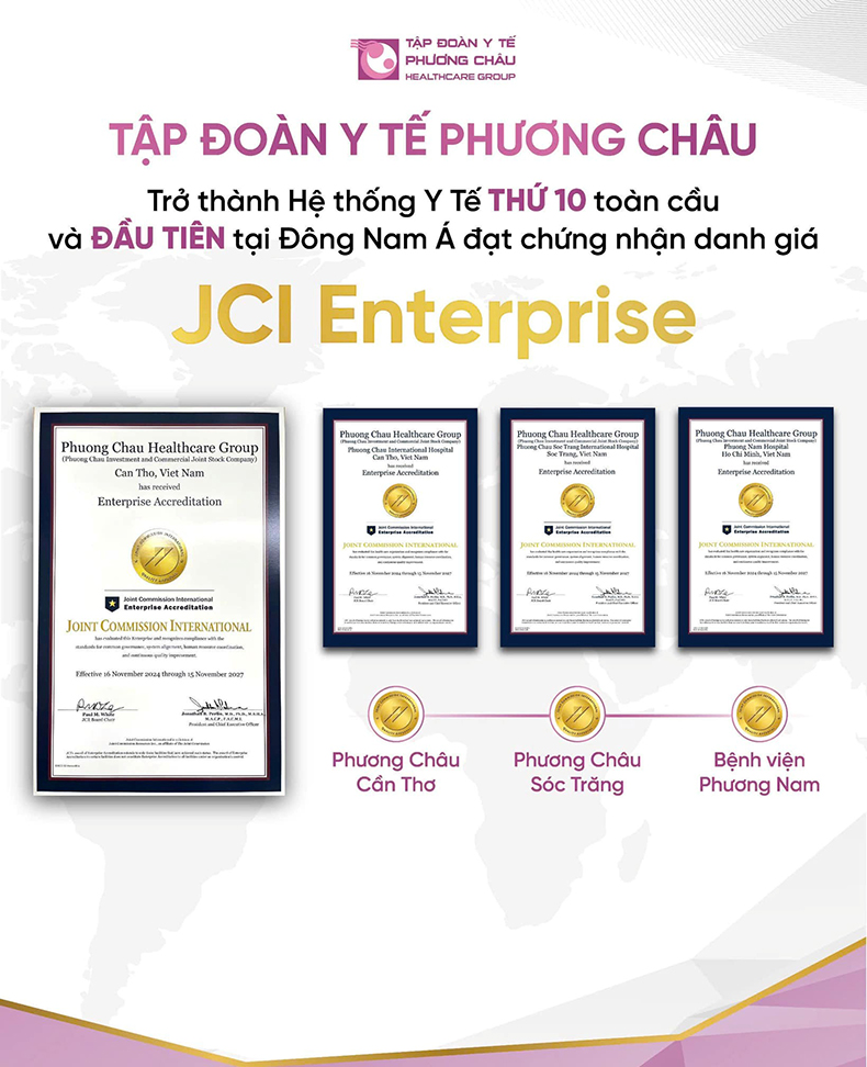 Để duy trì danh hiệu JCI Enterprise, các bệnh viện trong hệ thống phải đạt chứng nhận JCI. Vì vậy, việc Bệnh viện Quốc tế Phương Châu (Cần Thơ) được công nhận đạt chuẩn JCI lần thứ hai không chỉ khẳng định năng lực duy trì chất lượng quốc tế ở mức cao nhất, mà còn là yếu tố then chốt giúp hệ thống Phương Châu tiếp tục giữ vững danh hiệu JCI Enterprise – biểu tượng toàn cầu về an toàn và chất lượng trong chăm sóc sức khỏe người bệnh