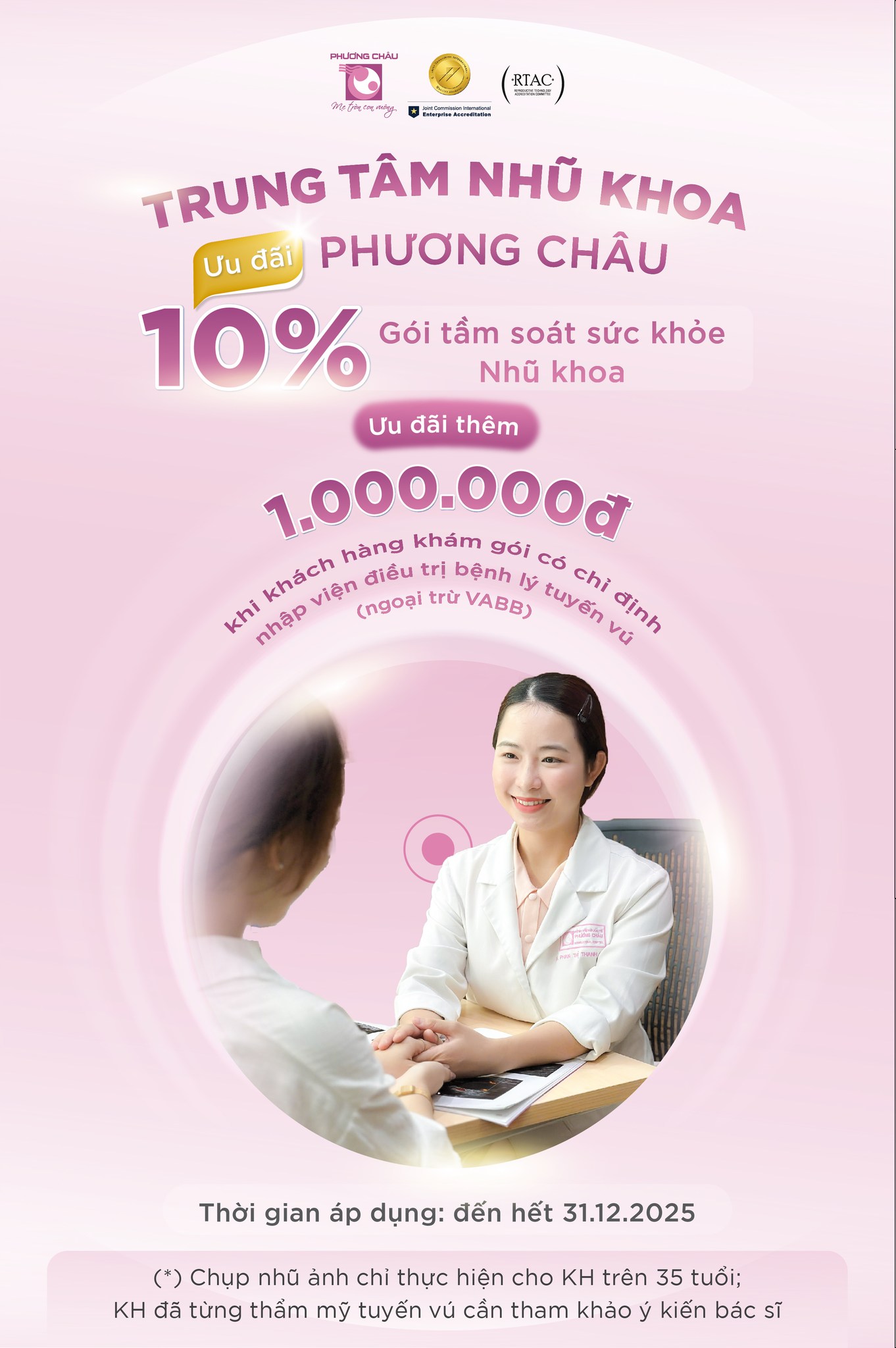 Trung tâm Nhũ khoa Phương Châu mang đến ƯU ĐÃI 10% cho GÓI TẦM SOÁT SỨC KHỎE NHŨ KHOA, giúp bạn có thêm một lý do nhỏ để yêu thương và chăm sóc bản thân sớm hơn.