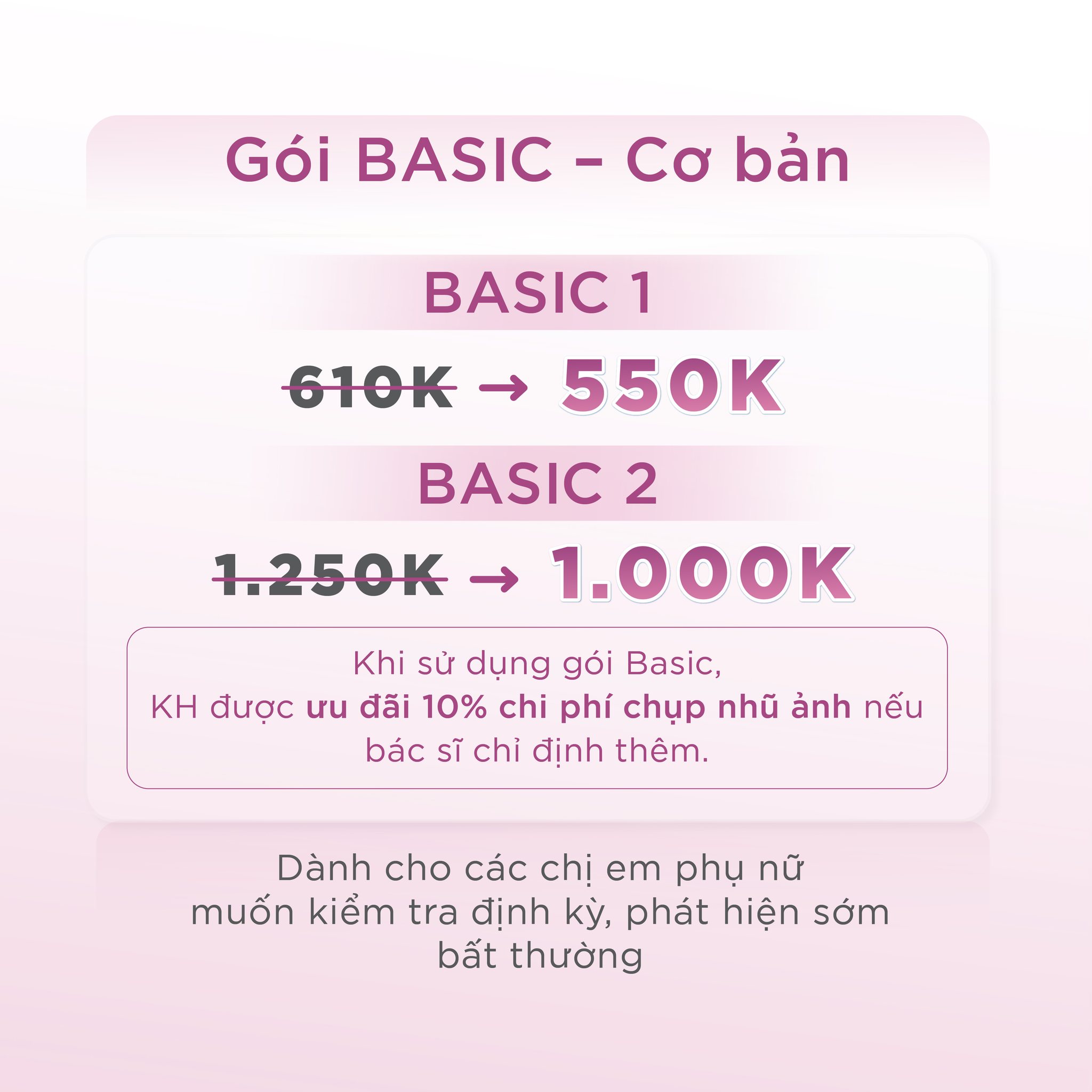 Khi sử dụng gói Basic, khách hàng được ưu đãi 10% chi phí chụp nhũ ảnh nếu bác sĩ chỉ định thêm.