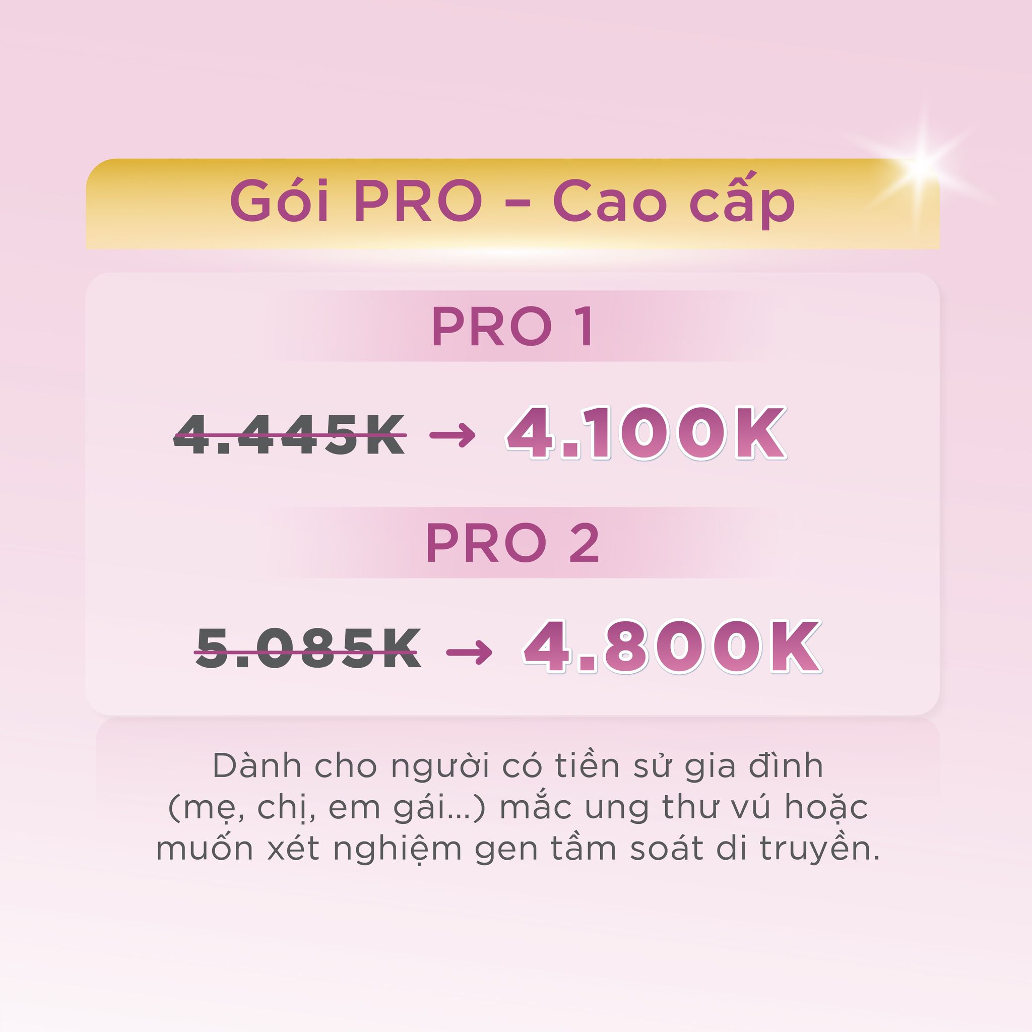 Pro 2: Khám & tư vấn; siêu âm nhũ 3D; chụp nhũ ảnh 2 bên; xét nghiệm PinkCare và định lượng CA 15-3