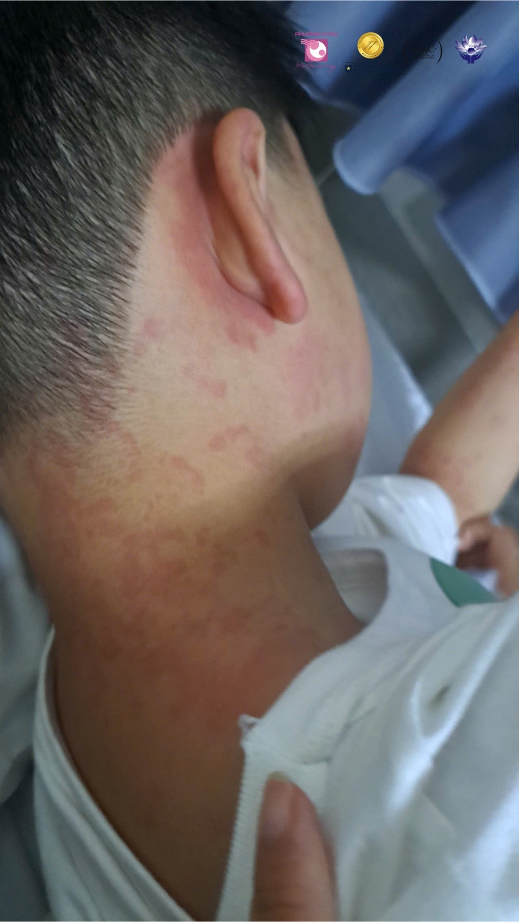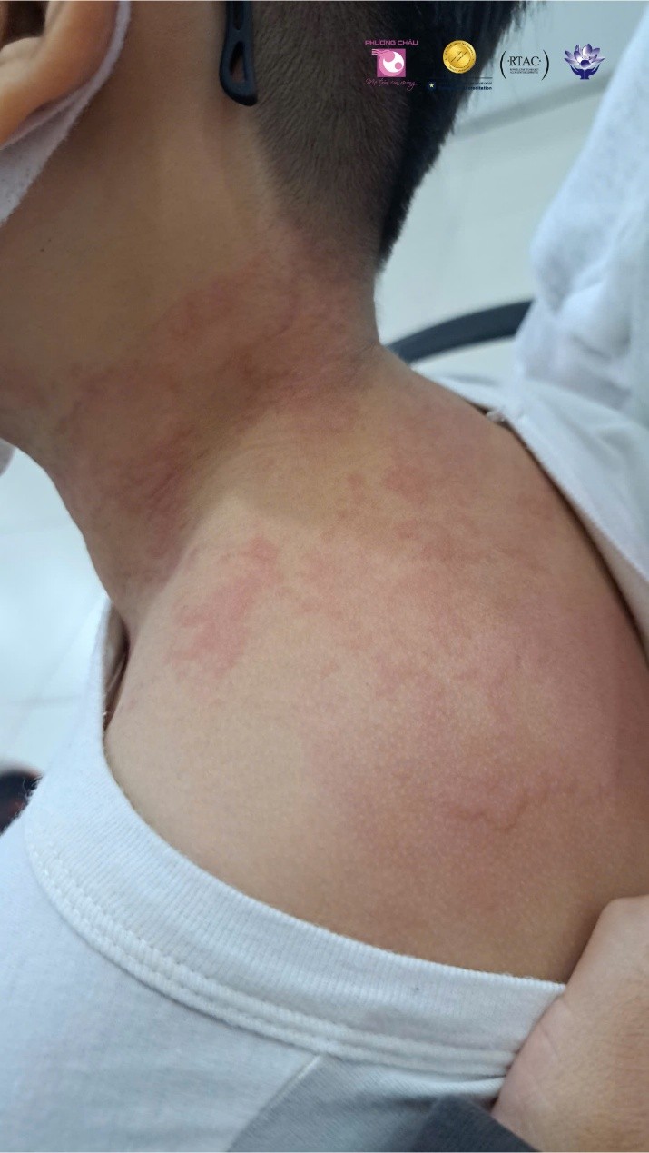 Hình ảnh bé bị dị ứng dẫn đến sốc phản vệ nhập viện tại BVQT Phương Châu (T2.2026)