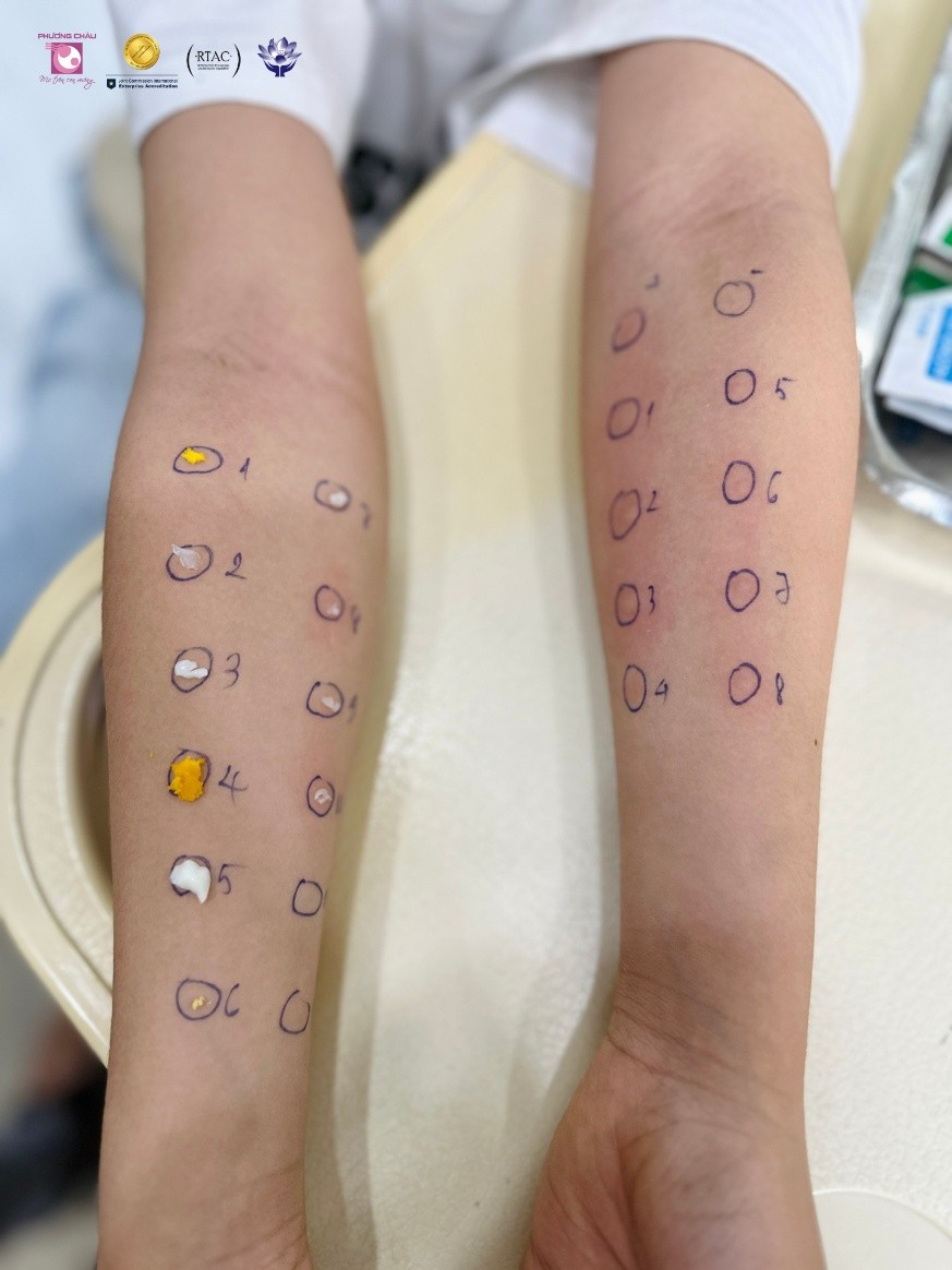 Tại đây, bé được chỉ định thực hiện xét nghiệm lẫy da – một phương pháp đơn giản, nhanh chóng và gần như không đau. Chỉ cần đưa một lượng nhỏ dị nguyên như bụi nhà, lông thú, phấn hoa hay thực phẩm nghi ngờ lên da, và theo dõi phản ứng trong khoảng 15–20 phút.
