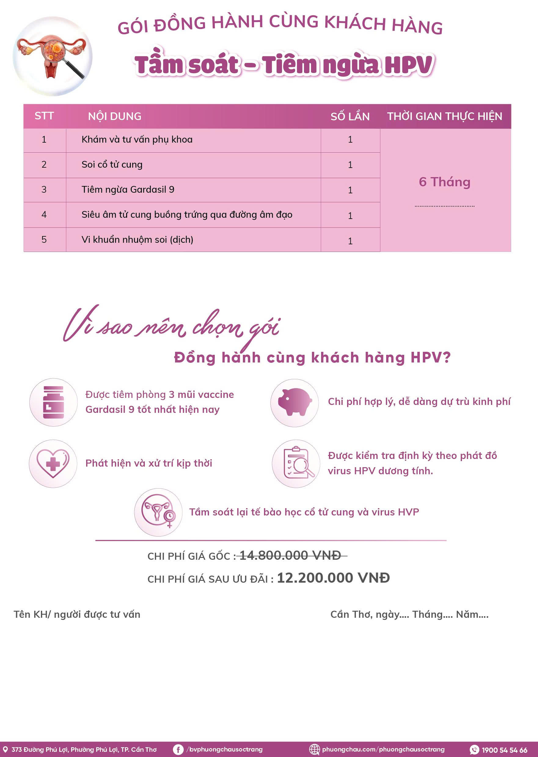Khi lựa chọn Gói đồng hành cùng khách hàng tầm soát – tiêm ngừa HPV, khách hàng sẽ được chăm sóc toàn diện với các dịch vụ: