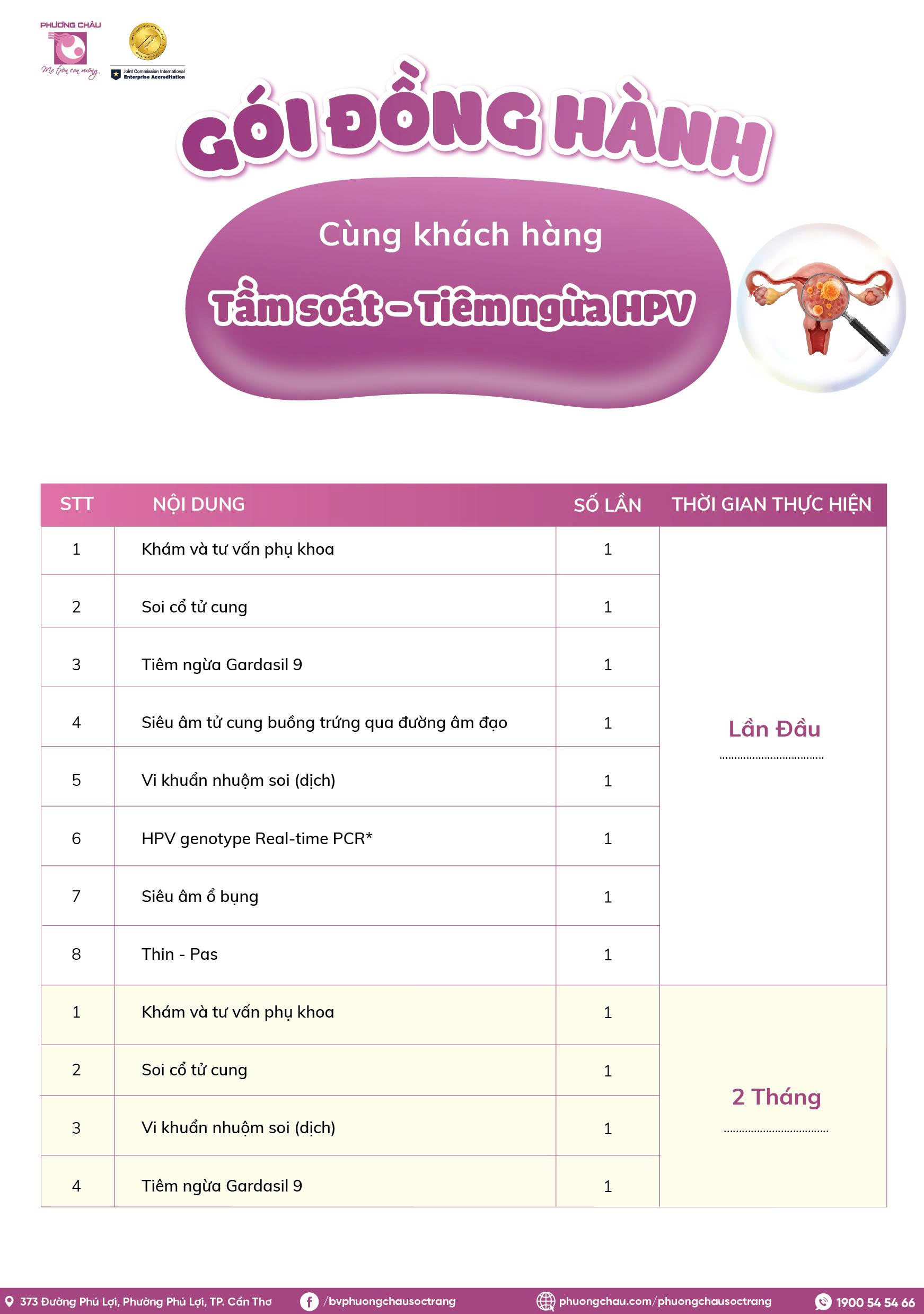 - Tái tầm soát tế bào học cổ tử cung và HPV sau khi hoàn tất gói để đảm bảo hiệu quả phòng ngừa lâu dài