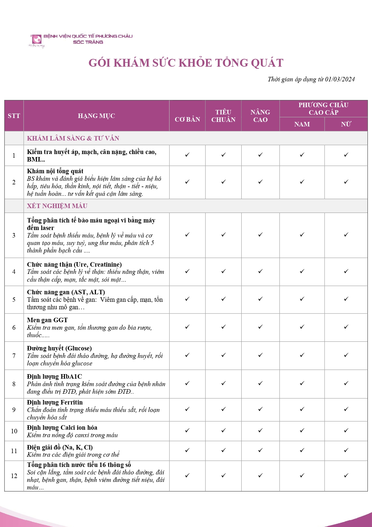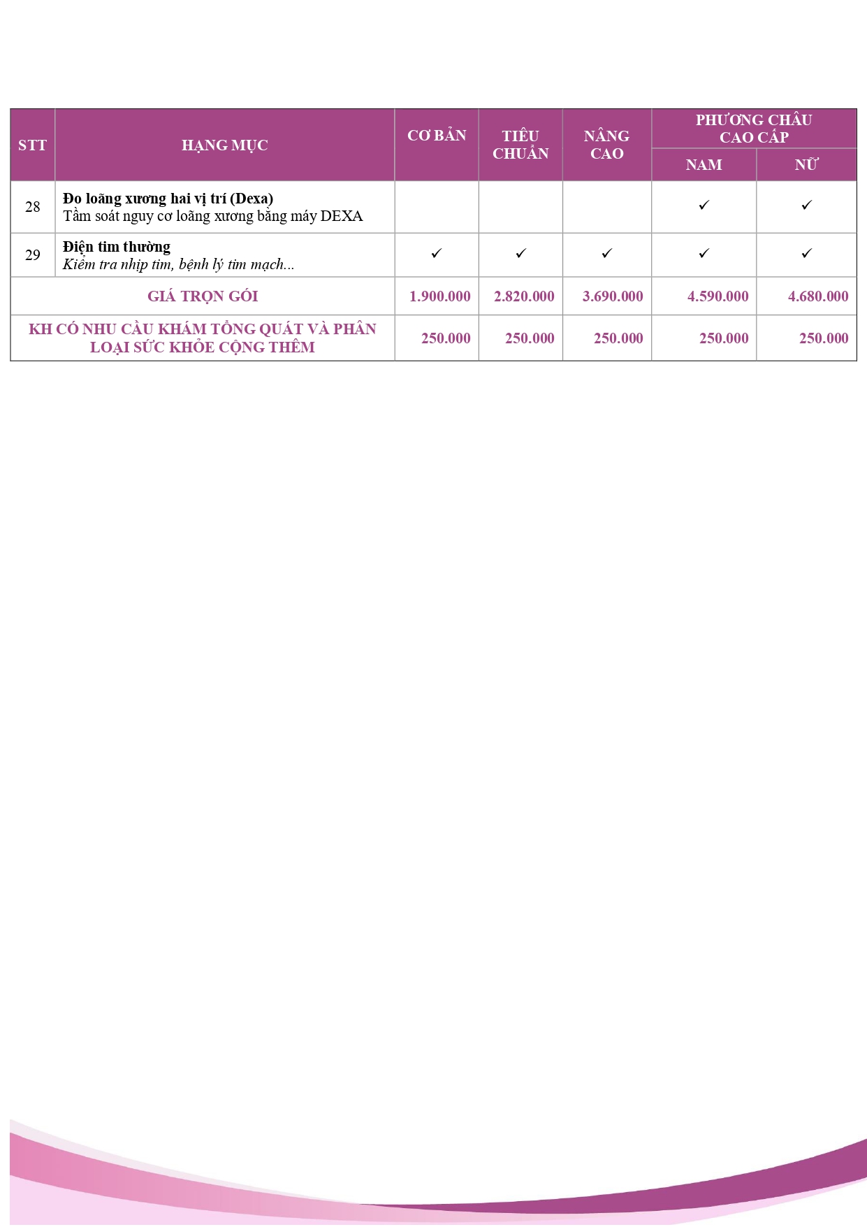 THÔNG TIN CÁC GÓI TẦM SOÁT SỨC KHOẺ: