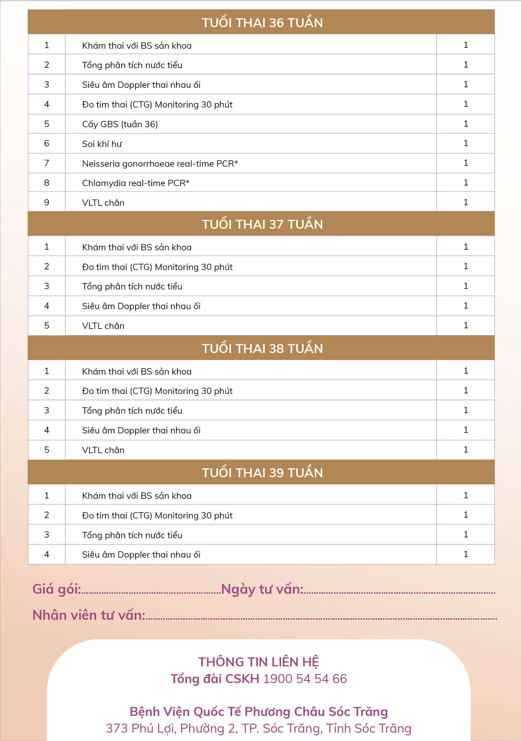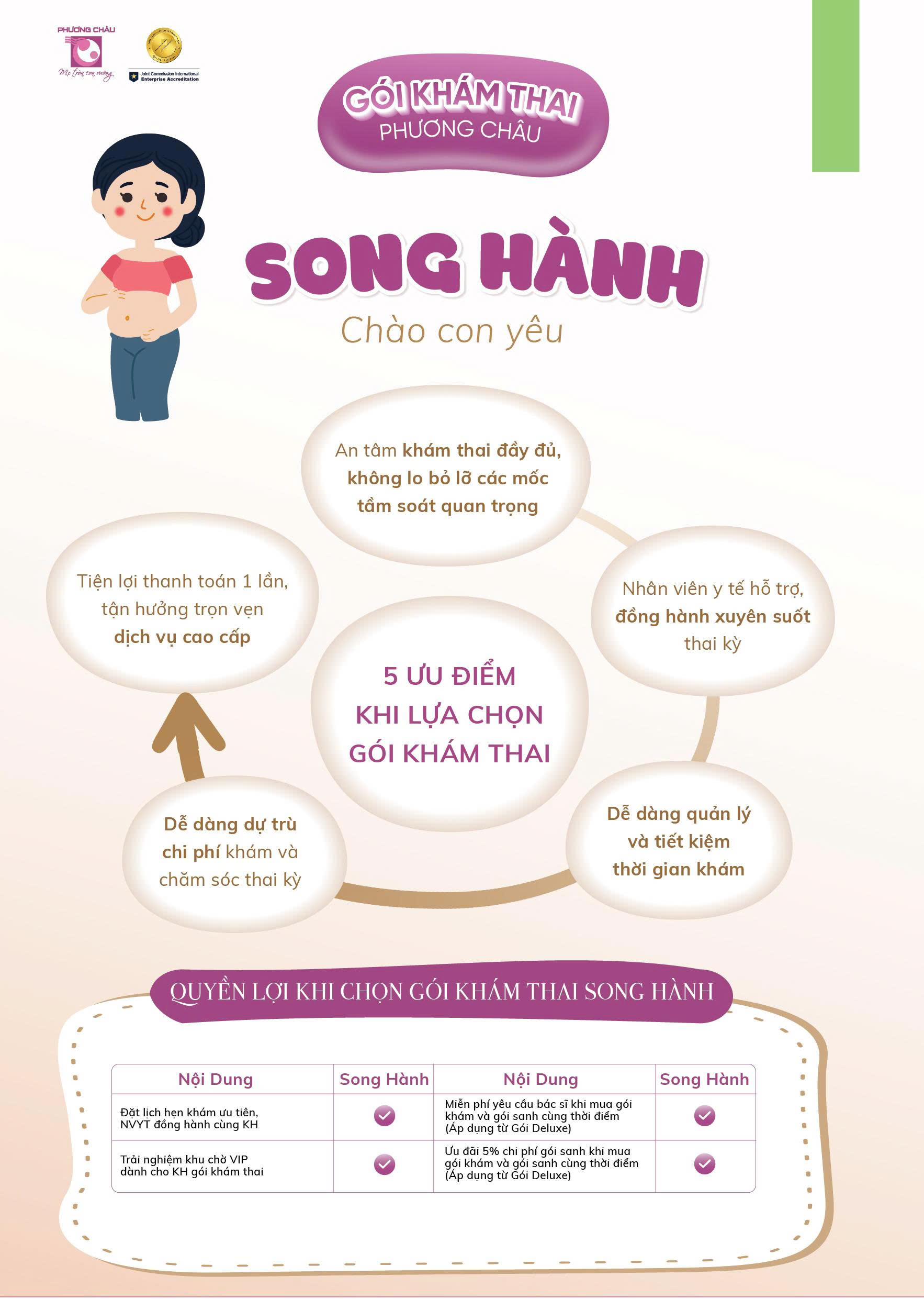 Gói khám thai - Song Hành dành cho mẹ bầu đang mang thai từ 12 - 39 tuần, bao gồm: 12 lần khám cùng bác sĩ sản, bộ chuẩn đoán hình ảnh và bộ xét nghiệm theo mốc thai kỳ.