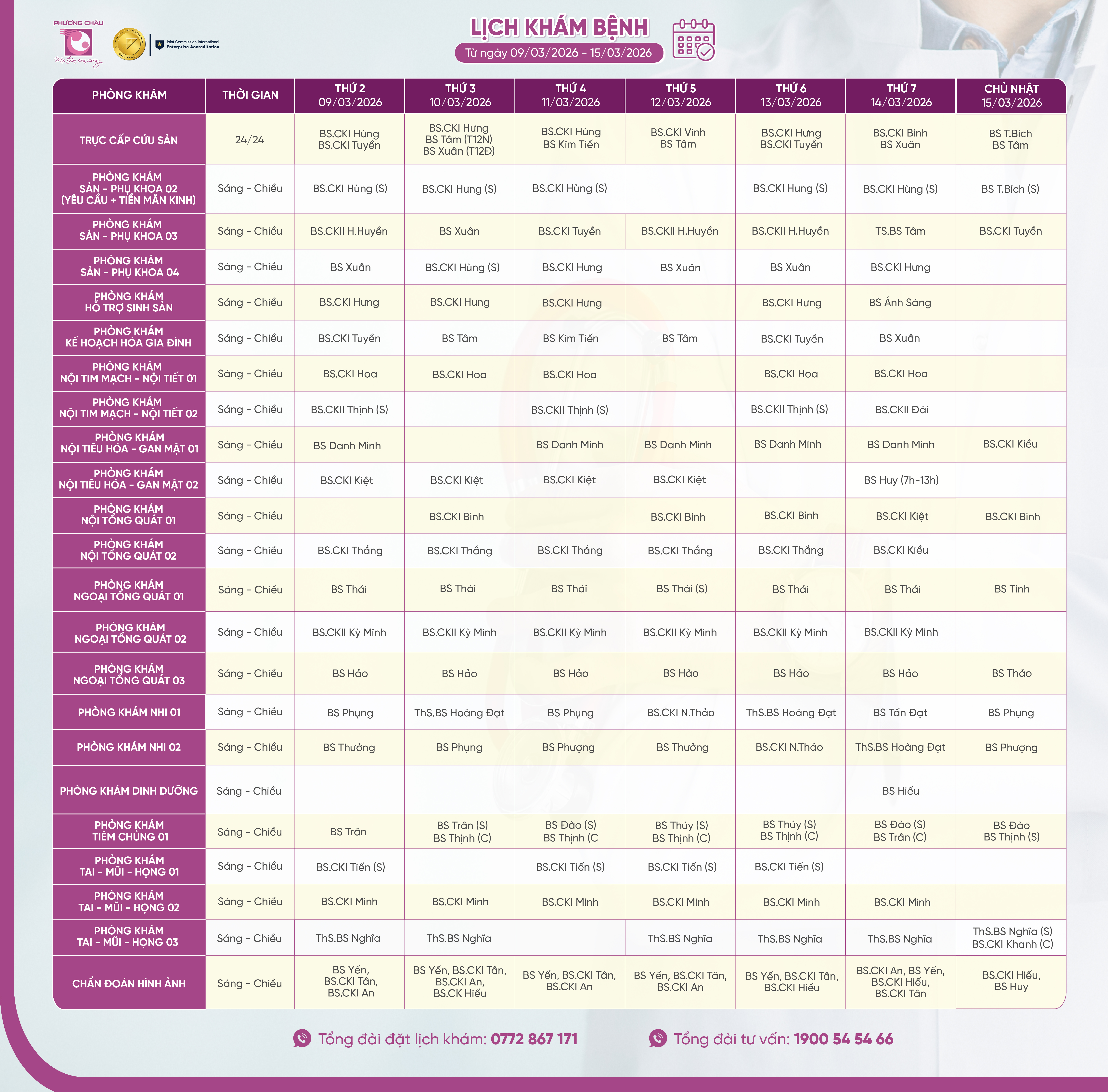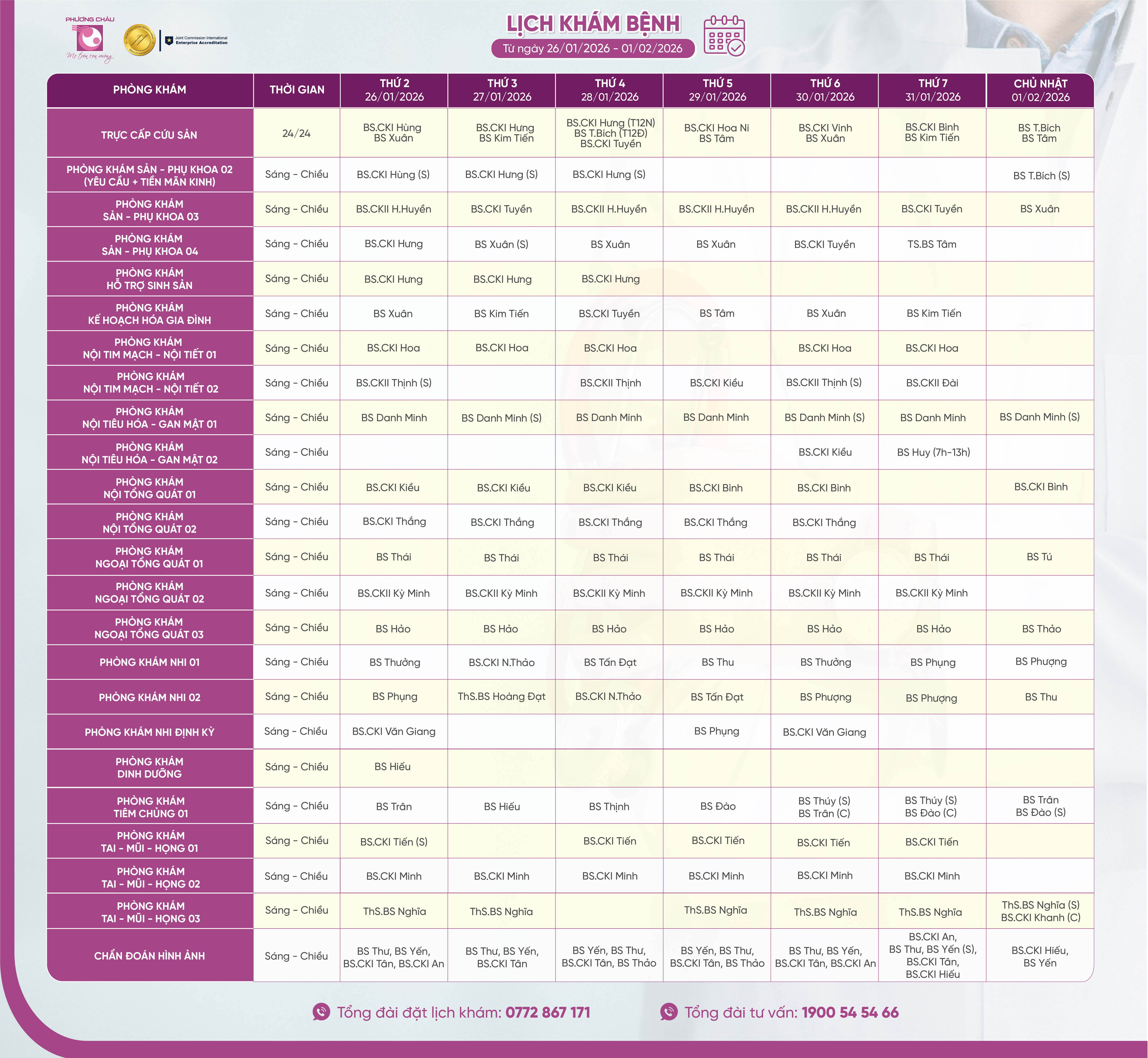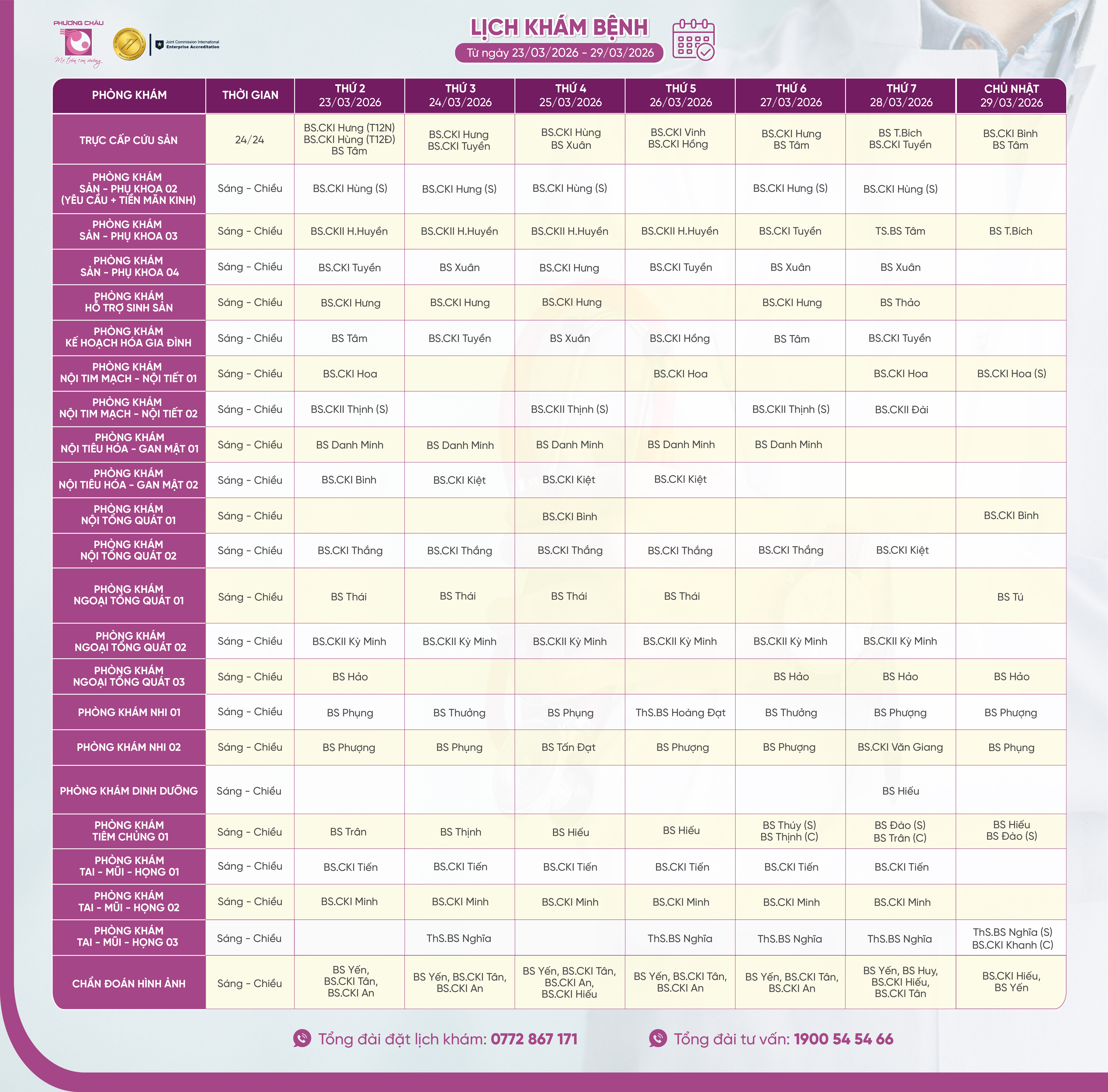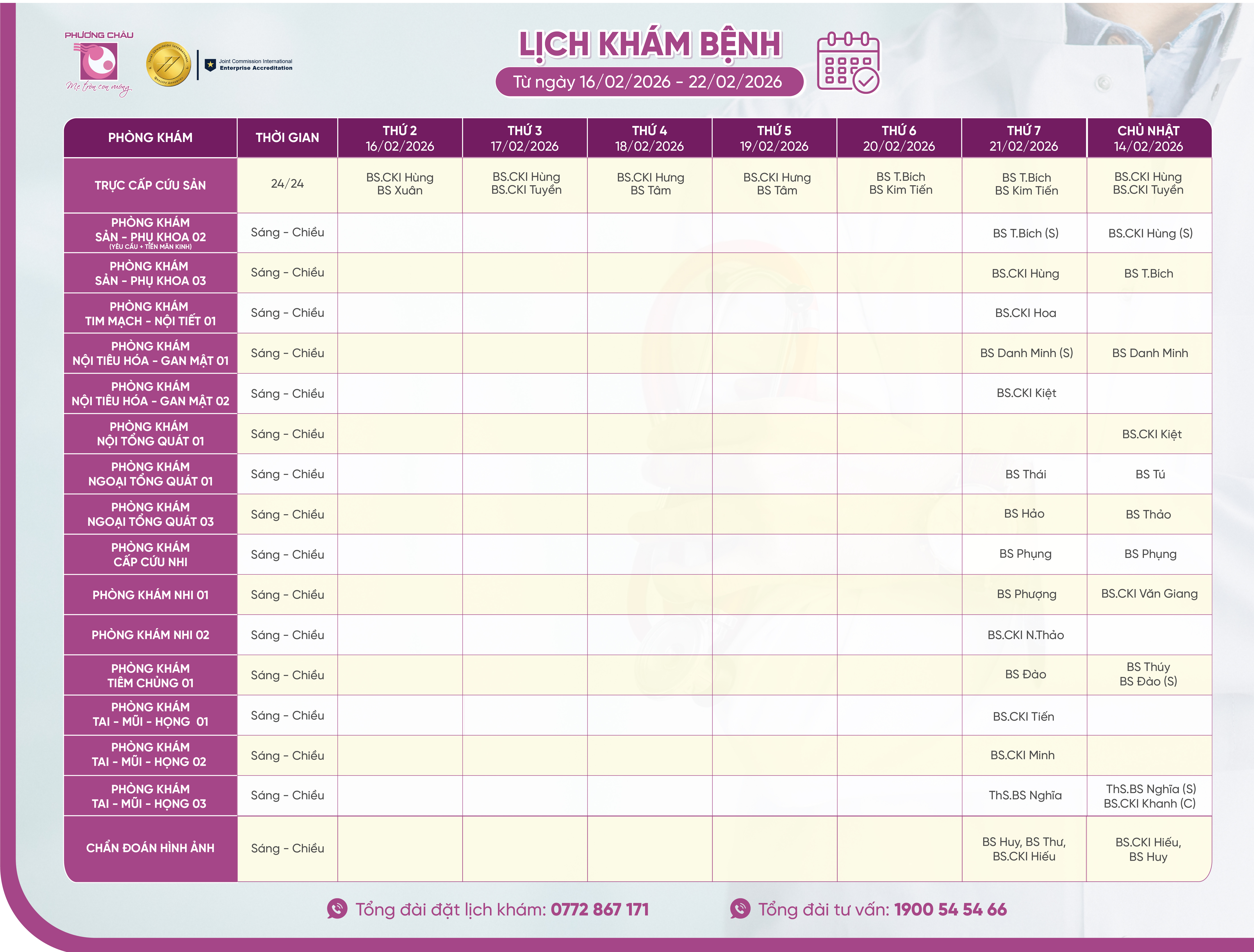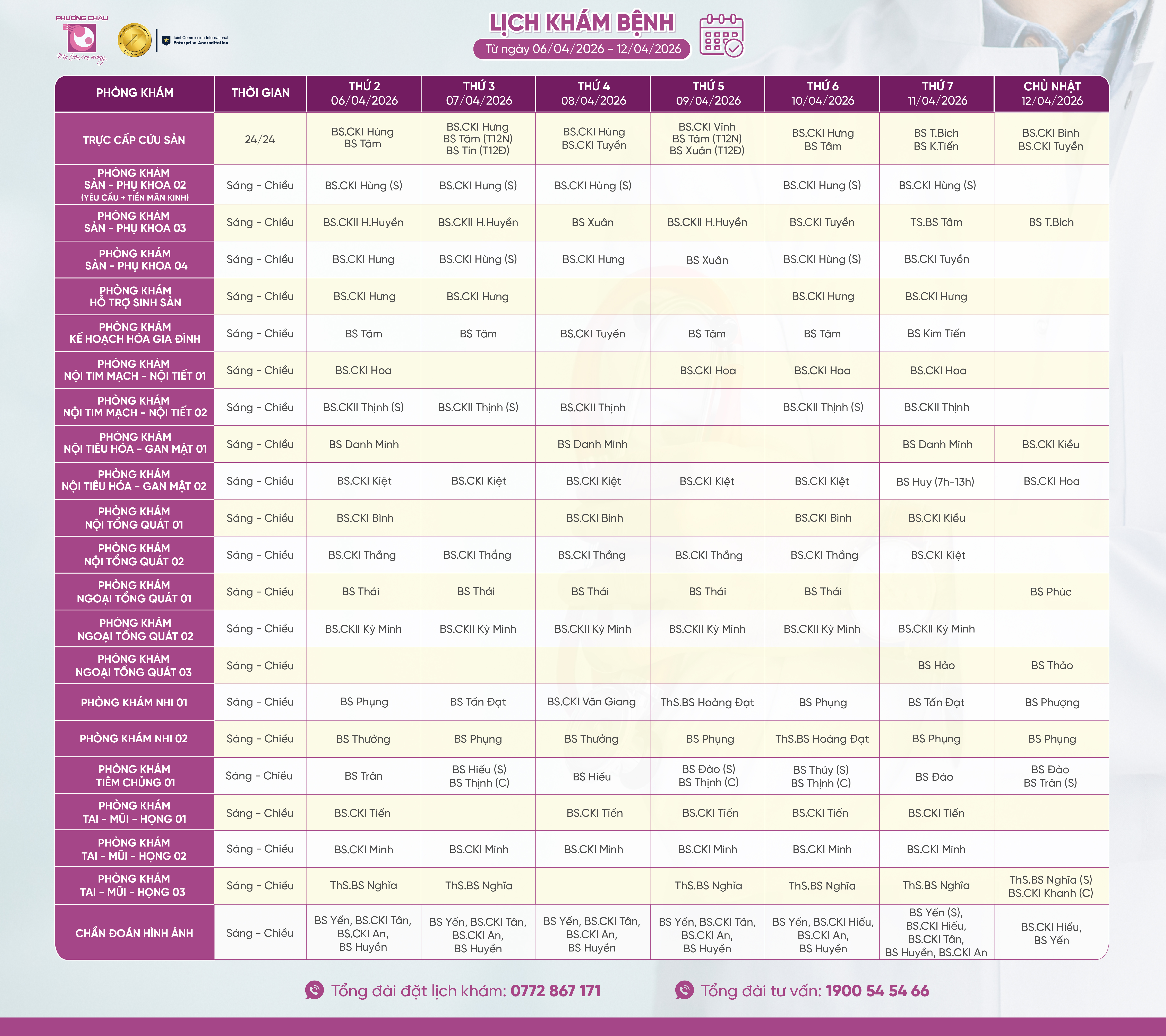 Để đặt lịch khám tại Bệnh viện Quốc tế Phương Châu Sóc Trăng, quý khách vui lòng liên hệ hotline